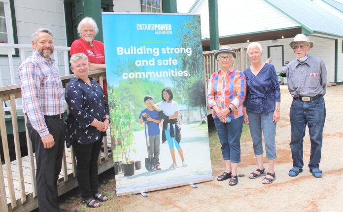 On the Friday afternoon, Corey Squires, left, was on hand to present the museum with a $5,000 donation on behalf of Ontario Power Generation, with the money going towards the extensive upgrades the society’s volunteers have made to the church at the museum.